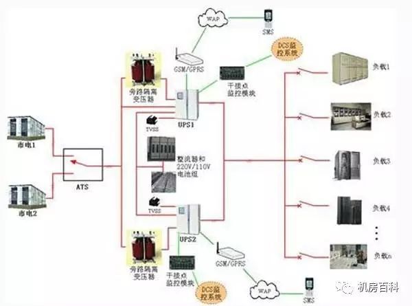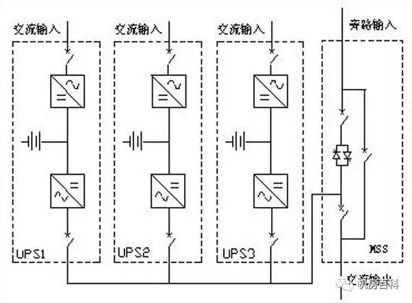 在市電正常時由市電直接向設(shè)備供電,當(dāng)市電斷開時由蓄電池逆變供電。